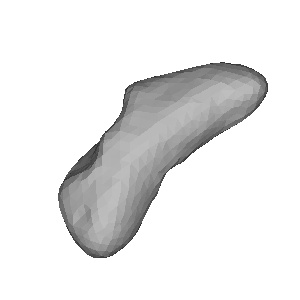 Shape model from PDS (433 EROS PLATE MODEL MSI 1708), rotation state from Konopliv et al. (2002)
